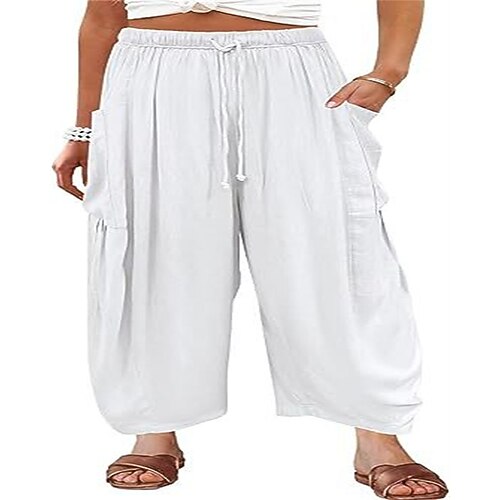 Per donna Pantaloni in cotone e lino Culotte Gamba Larga Gamba larga Vacanza Streetwear Essenziale Lunghezza alla caviglia Vita media Tinta unica Semplice Tasca Fascia Elastica Comodo Traspirante