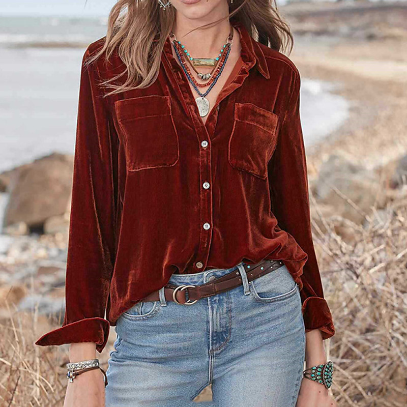 Women's Shirt Texture Blouse Plain Daily Stylish Basic Long Sleeve Shirt Collar Regular Tops Work Daily Holiday Buttons Wine Purple Green Spring Fall