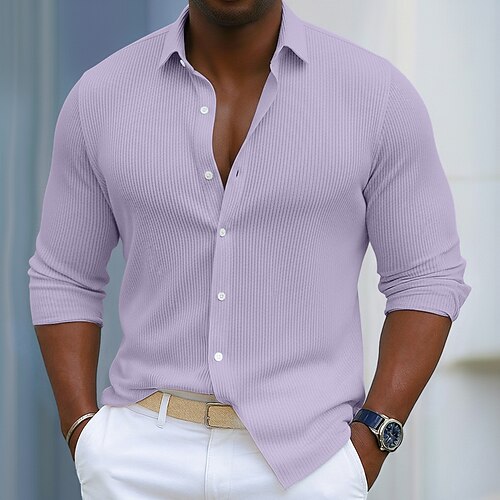 Herren Hemd Cordhemd Knopfhemd Blau Schwarz Weiß Marineblau Purpur Langarm Einfach Umlegekragen Lässig Täglich Button-Down Bekleidung Polyester Mode Streetwear Klassisch Lässig