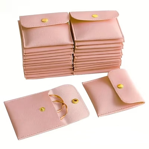 10 Schmuckaufbewahrungsbeutel aus PU-Leder mit Druckknopfverschluss, 8 x 8 cm, geeignet zur Aufbewahrung von Ringen, Halsketten und Accessoires in verschiedenen Farben.