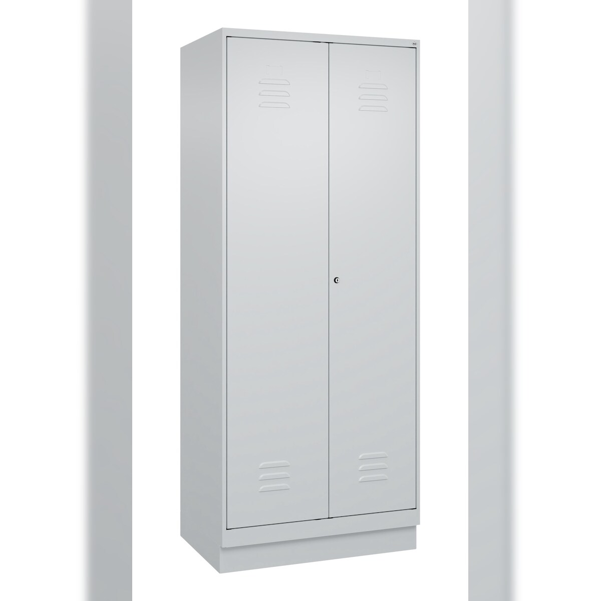 C+P Doppel-Spind Classic PLUS, Sockel, 2 Abteile, HxBxT 195x80x50cm, Zylinderschloss, Hellgrau/Hellgrau von PROREGAL