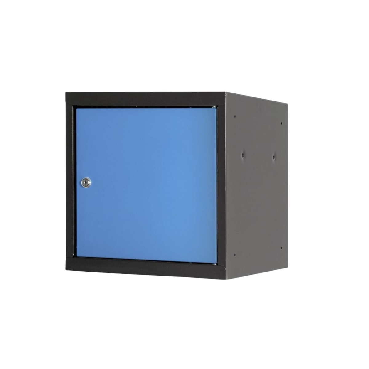 Proregal Schließfachwürfel Blocky mit Zylinderschloss + 2 Schlüssel | HxBxT 40x40x40cm | Anthrazit/Lichtblau