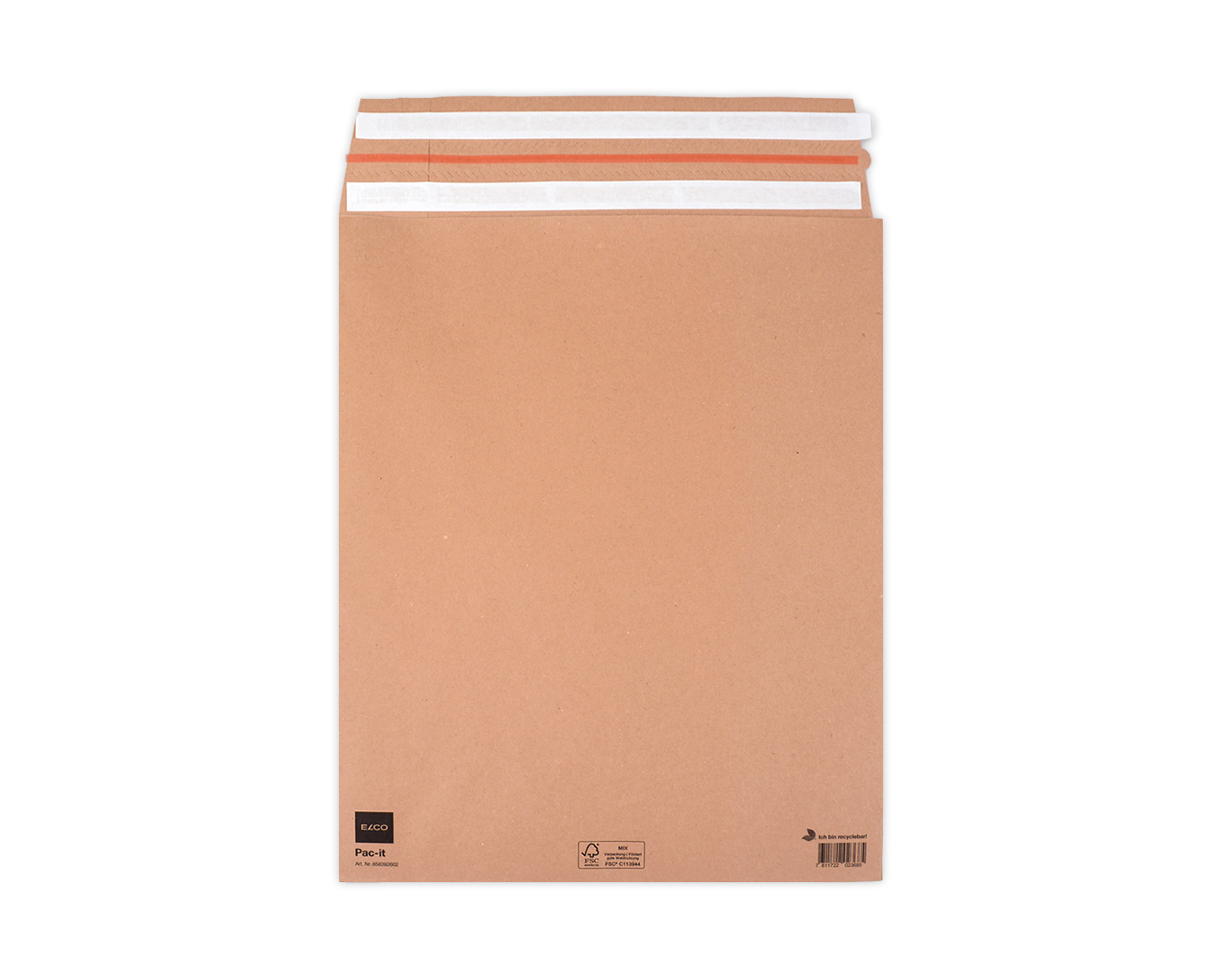 Sachets d'expédition en papier fond de pointe, ELCO , 380 x 475 x 80 mm, Double fermeture auto-adhésive, 135g/m2, brun