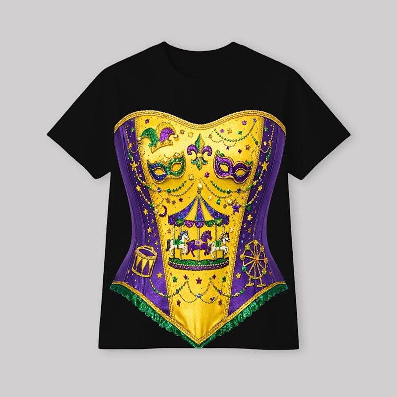 Mardi Gras 2026 T-shirt Sleeve T-shirt for Women's Adults' Hot Stamping for Carnival Mardi Gras Club Festival