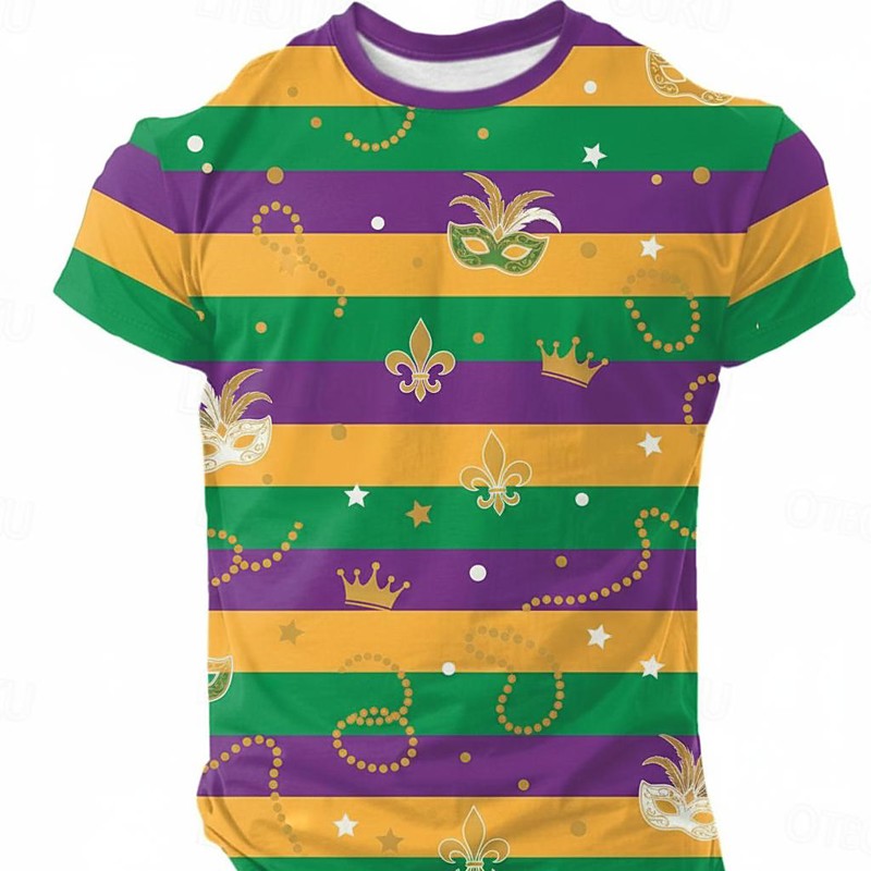Anime 3D Print Mardi Gras 2026 T-shirt Sleeve T-shirt Cartoon Manga NOLA Graphic for Men's Adults' 3D Print for Carnival Mardi Gras Party Casual Daily