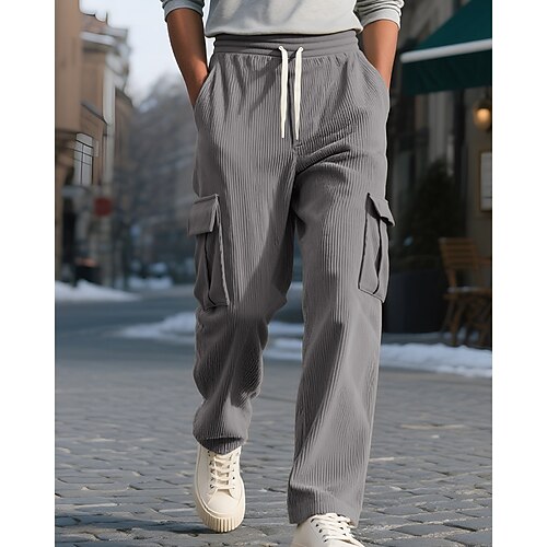 Herren Cargo-Hosen Cordhose Hose Tasche Elastischer Bund Kordelzug Einfach Komfort Sport im Freien Täglich Mode Lässig Armeegrün Schwarz Mikroelastisch
