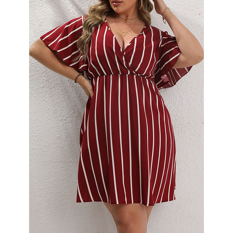Women's Plus Size Casual Dress Striped V Neck Short Sleeve Summer Spring Fashion Modern Casual Mini Dress Daily Holiday Dress