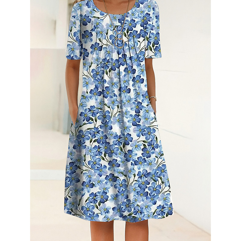 Women's Midi Dress Casual Dress Summer Dress Fashion Modern Daily Beach Weekend Regular Fit Flower Short Sleeve Crew Neck Blue Summer Spring