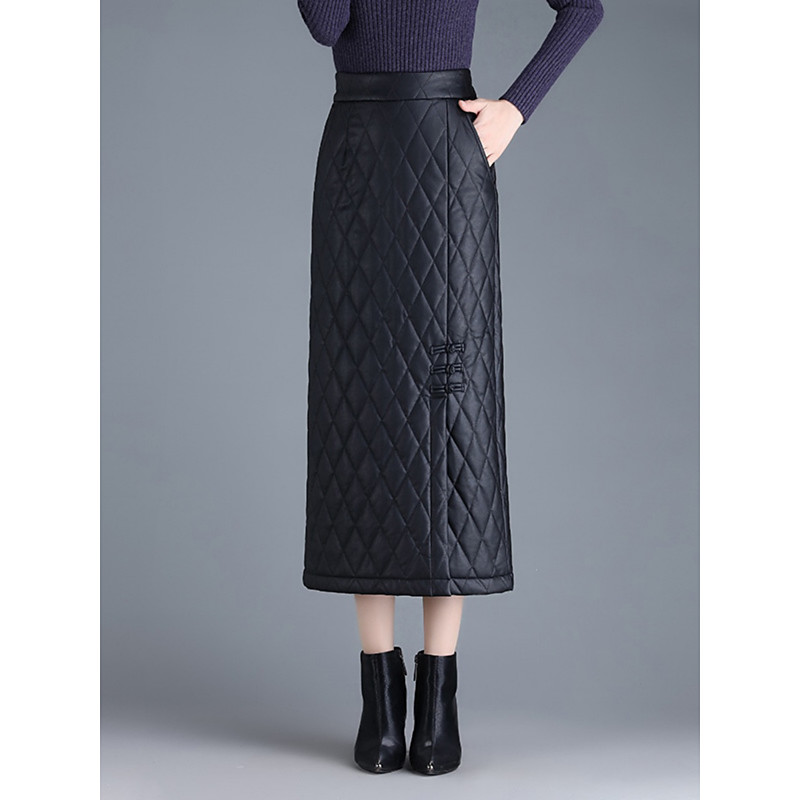 Women's Skirt A Line Fashion Casual Midi High Waist Skirts Plain Pocket Micro-elastic Street Daily Black Spring Faux Leather