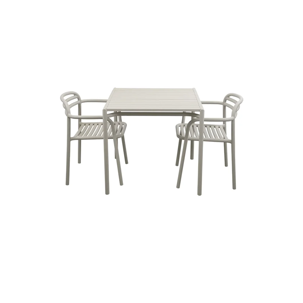 Cane-line, Bliss Esstisch inkl. zwei Stühle mit Armlehnen – Sandfarbenes Aluminium