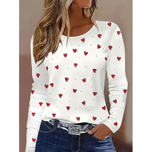 San Valentino Per donna Maglietta Cuore Grafico Vintage Moda Elegante Manica Lunga Girocollo Top Regolari Quotidiano Weekend Stampato Bianco Rosso Estate Primavera