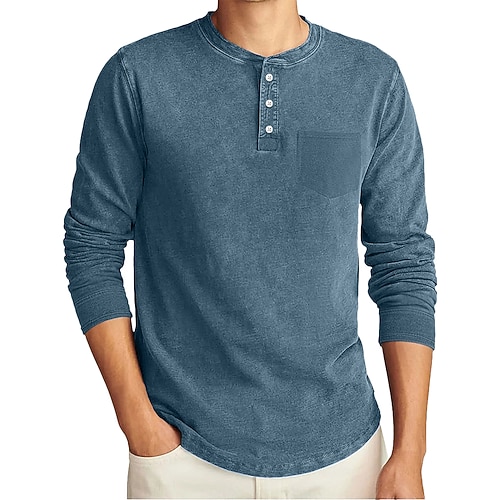 Herren Henley Hemd T-Shirt Langarmshirt Langarm Henley Herbst Winter Retro Mode Designer Nostalgisch Mode Jahrgang Urlaub Straße Ausgehen Marineblau Schwarz Himmelblau Top T-Shirt für Herren