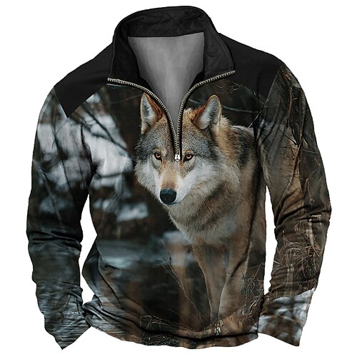 Per uomo Animale Lupo Giacca di pelle Felpa Moda Quotidiano Pantaloni Tattici Da caccia Collo alla coreana All'aperto Abbigliamento casual alla moda Feste Blu Marrone Marrone 2 Con zip Primavera