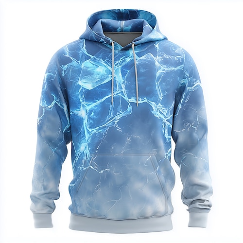 Per uomo Illusione ottica Cubetto di ghiaccio Felpa con Cappuccio Felpa Moda Cool 3D Girocollo Casa Feste Abbigliamento casual alla moda Blu 1 Nero Coulisse Autunno Inverno progettista S M L XL XXL