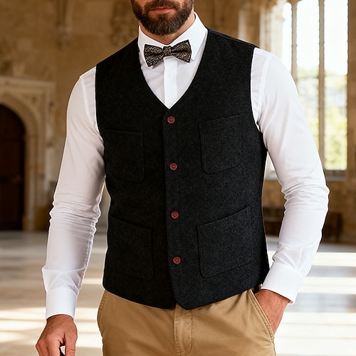 Per uomo Gilet All'aperto Vacanza Feste Ufficio / Carriera Moda Streetwear Primavera Autunno Tasca Bottoni Poliestere Traspirabilità Semplice Monopetto Scollo a V Vestibilità su misura Nero Grigio