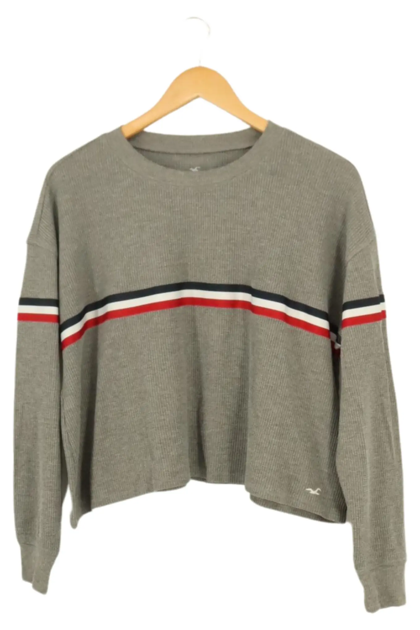 HOLLISTER Sweatshirt Damen Gr. S Grau Streifen Casual Look
