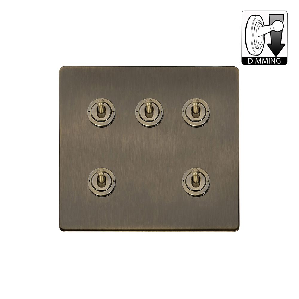 Soho Lighting Antique Brass 5 Gang Dimming Toggle Switch
