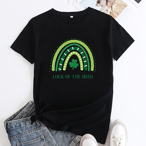 Per donna maglietta Cotone Arcobaleno Trifoglio Festa di San Patrizio Informale Nero Bianco Giallo Stampa Manica corta Di tendenza Rotonda Standard Primavera estate