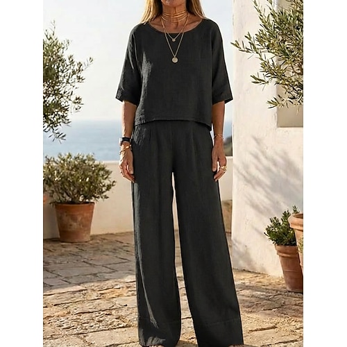 Per donna Set di biancheria in cotone Set di Pantaloni Bolero Top Manica Corta Girocollo Semplice Moda Streetwear Quotidiano All'aperto Spiaggia Nero Giallo Grigio chiaro Estate Vestibilità comoda