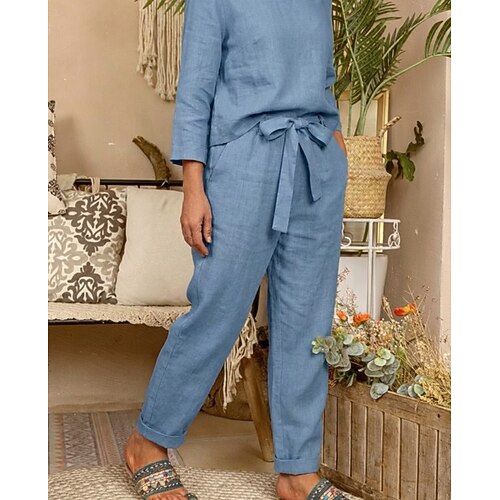 Per donna Set di biancheria in cotone Set di Pantaloni Bolero Top Manica Lunga Girocollo Semplice Coulisse Moda Streetwear Casuale Quotidiano All'aperto Nero Arancione Beige Estate Vestibilità comoda