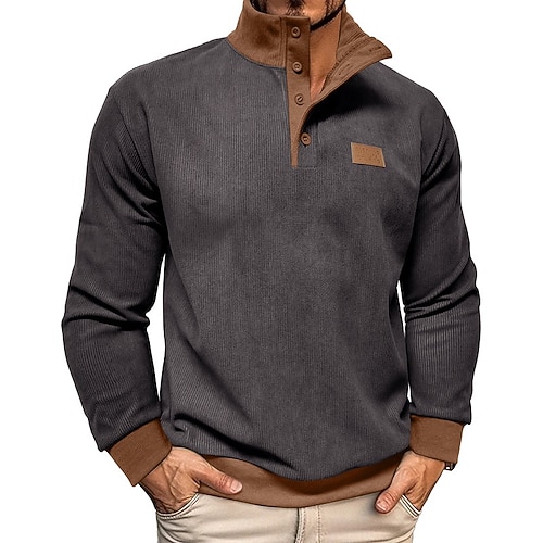 Per uomo Maglia Velluto a coste Felpa in pile Felpa con cappuccio Felpa con cappuccio abbottonata Aalbicocca Nero Verde militare Blu marino Blu Colletto Mao Semplice Patchwork Sport Outdoor Casuale