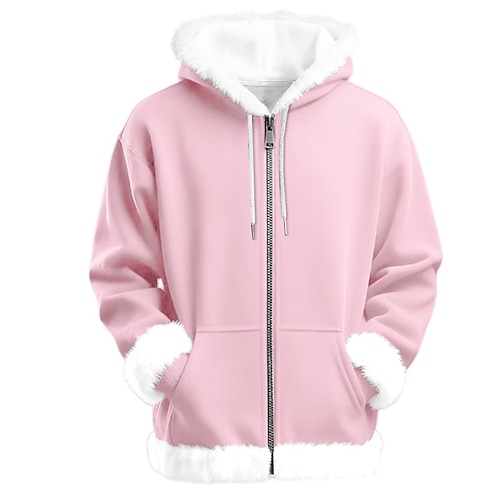 Per uomo Felpa con cappuccio Felpa con cappuccio a zip intera Felpa con cappuccio in pile Felpa con cappuccio foderata in pile Aalbicocca Nero Rosa Rosso Blu Reale Con Cappuccio Semplice Patchwork
