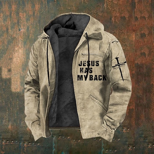 Per uomo Felpa con cappuccio a zip intera Giacca in Pile Felpa con cappuccio in pile Aalbicocca Marrone Con Cappuccio Lettera Croce Cerniera Tasca Casuale Quotidiano Uscire Poliestere Streetwear