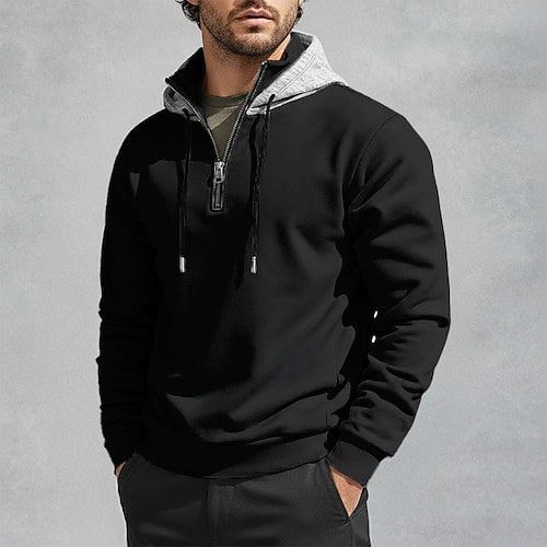 Per uomo Felpa con cappuccio Maglione Felpa con cappuccio e zip corta Felpa con cappuccio in pile Aalbicocca Nero Bianco Rosso Borgogna Con Cappuccio Semplice Tasca Casuale Quotidiano Sport Outdoor