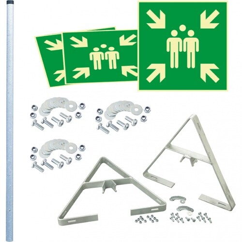 PERMALIGHT power langnachleuchtend Dreieckset Rettungszeichen Sammelstelle, Aluminium, 400x400mm, Befest.