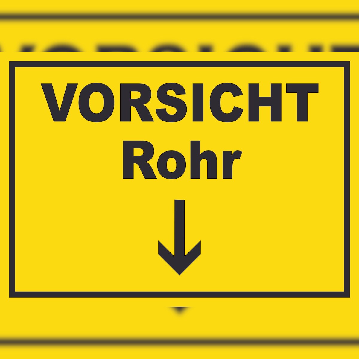 HB-Druck Vorsicht Rohr mit Richtungspfeil unten Schild A4 (210x297mm)
