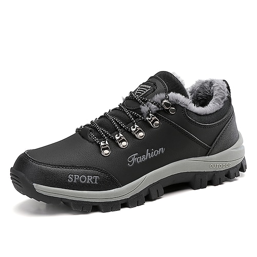 scarponi da trekking invernali neri da uomo: scarpe impermeabili da esterno con suola spessa, ideali per il freddo, il trekking e le avventure all'aria aperta