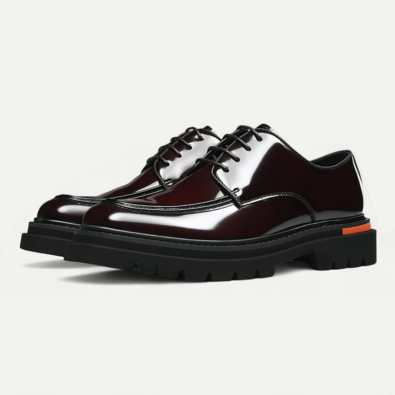 Men's Green Gradient Patent Leather Oxford Dress Shoes, Shiny Lace - Up Formal Shoes for Weddings Business Events