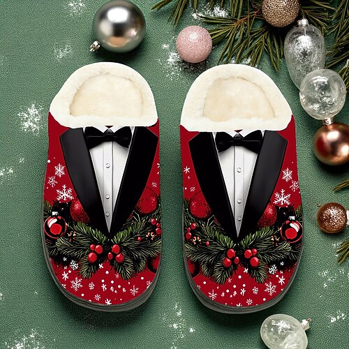 pantofole da uomo con stampa smoking natalizia - design classico smoking, pantofole con fodera pelosa per uomo, a tema festivo per feste di Natale, relax e regali per le feste