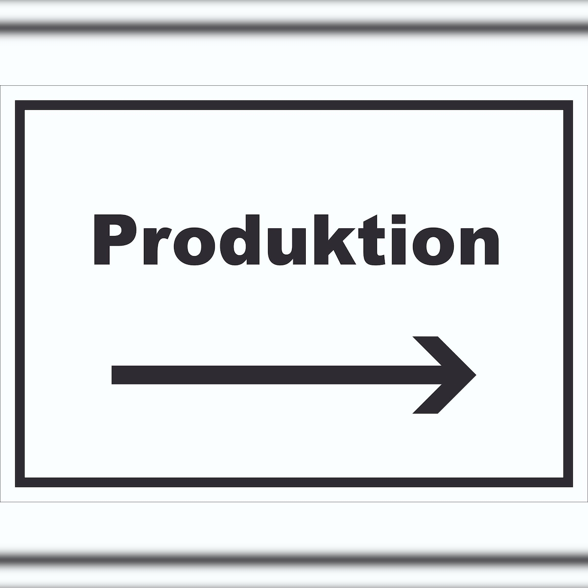 HB-Druck Produktion Schild mit Text und Richtungspfeil rechts Herstellung waagerecht A2 (420x594mm)