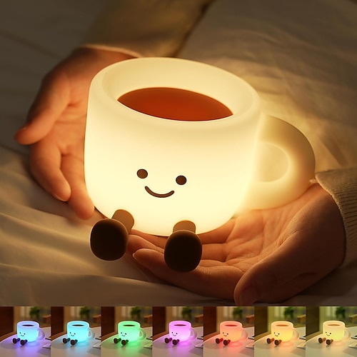 luce notturna per bambini, luce notturna a forma di tazza da caffè a 7 colori con USB, lampada notturna in silicone dimmerabile a 3 livelli, lampada da comodino per bambini con timer, luce notturna ricaricabile per decorazioni, regalo per ragazzi e...