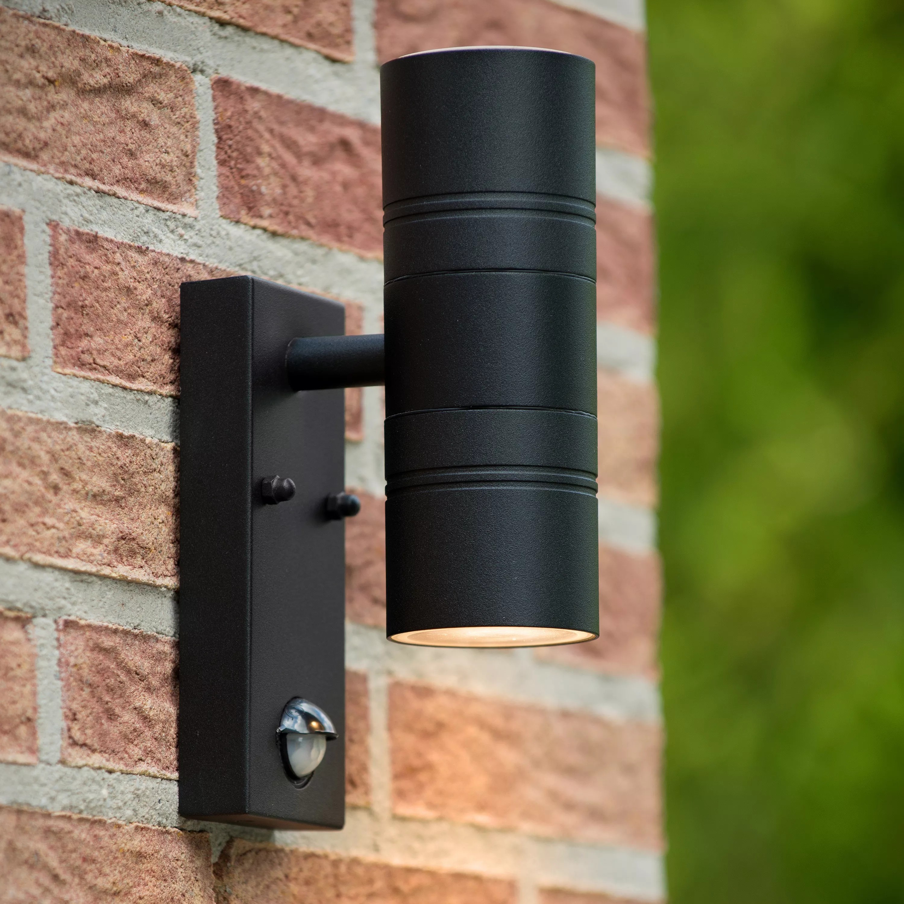Lucide Arne - wandverlichting met bewegingssensor - 6,3 x 12 x 22,5 cm - 2 x 5W LED incl. - IP44 - zwart