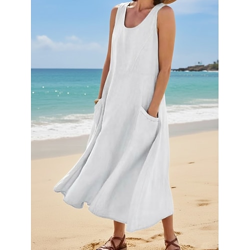Per donna Abito maxi Vestito Estivo Abito a trapezio Vacanza Casual Spiaggia Uscire Vestibilità comoda Tinta unica Grafico Senza Maniche Girocollo Blu chiaro Bianco Viola Arancione Estate Primavera