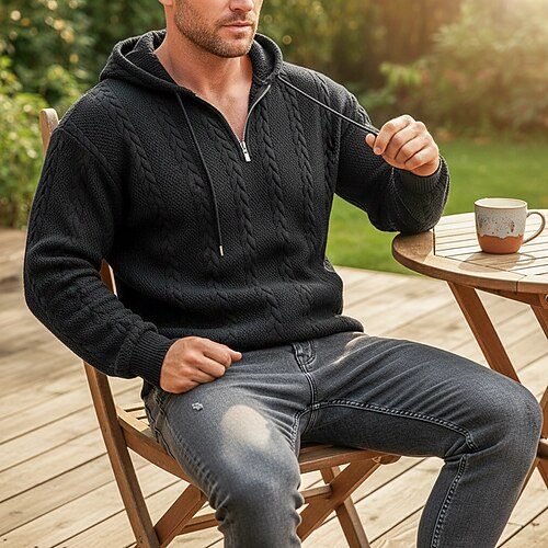 Per uomo Jacquard Felpa con cappuccio Felpa con cappuccio e zip corta Aalbicocca Nero Bianco Verde chiaro Vino Con Cappuccio Semplice Con zip Testurizzato Casuale Quotidiano Sport Outdoor