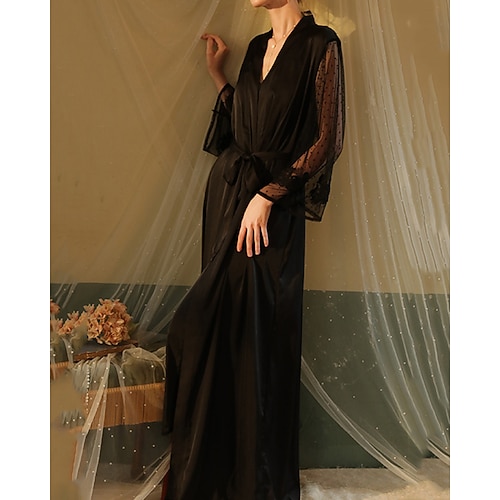 Per donna Accappatoio Casual Morbido Raso Colore Puro Patchwork Rete Quotidiano Casa Da letto Manica Lunga Scollo a V Nero Bianco Vino Estate Vestibilità comoda