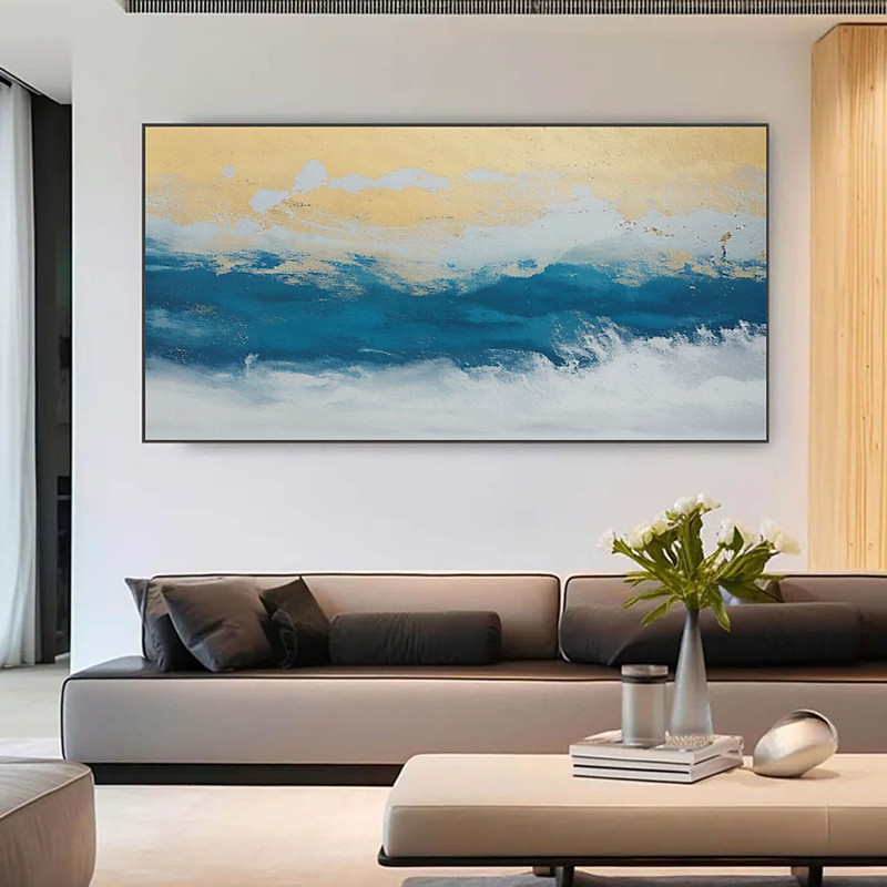 Extra Large Blue Wall Painting on Canvas Ocean Sunset Painting Gold Wall Painting Blue Abstract Art Canvas Texture Painting Beach Wall Art