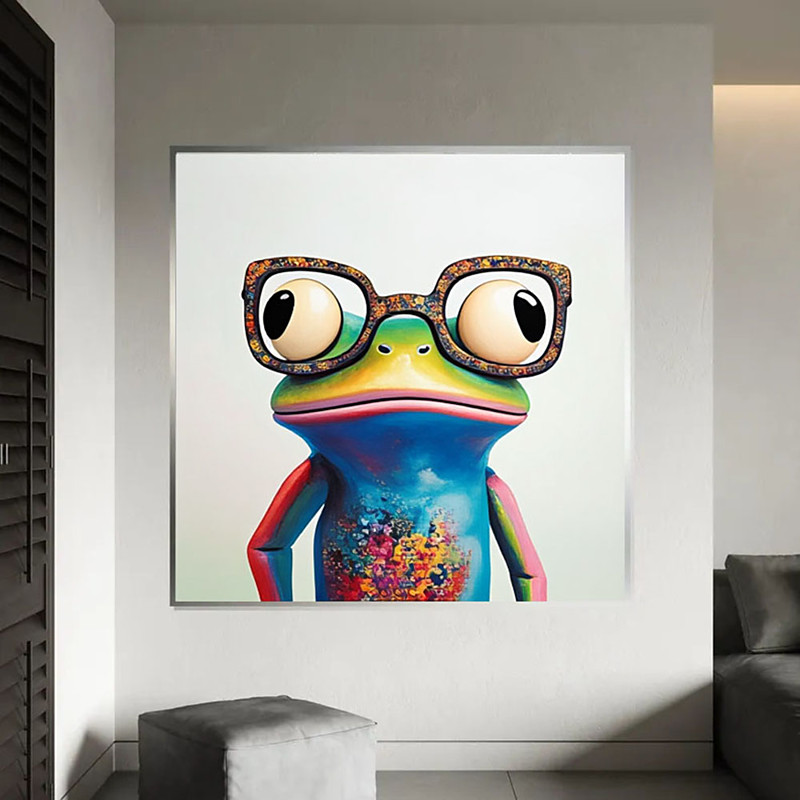 Animal Canvas Wall Art Frog Wall Art Colorful Animal Canvas Picture Funny Frog Wearing Glasses Oil Painting Modern Art Children's Room Wall Decoration