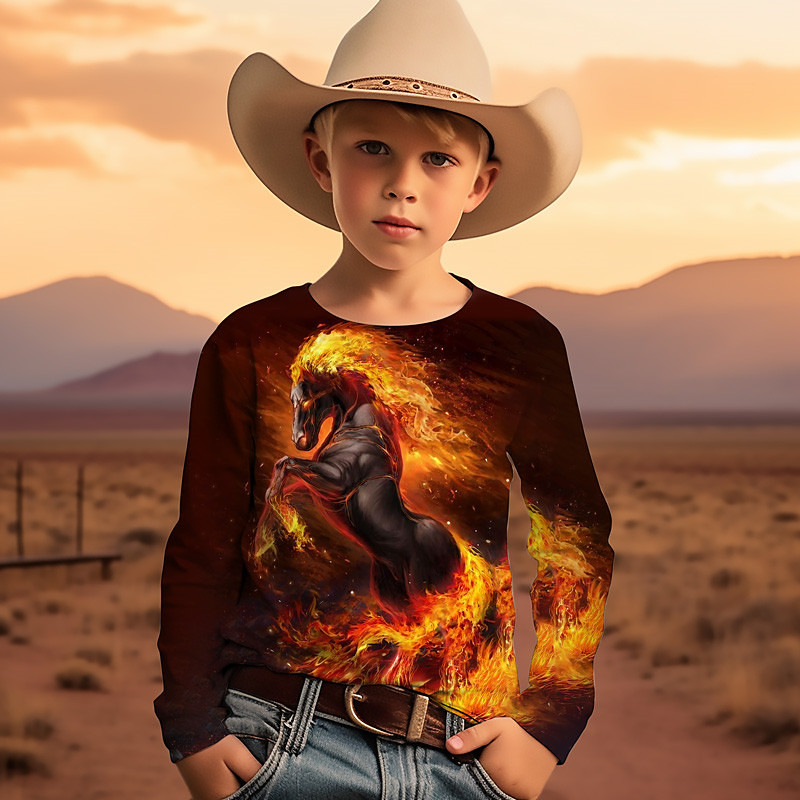 Boys 3D Graphic Animal Horse T shirt Tee Long Sleeve 3D Print Summer Spring Fall Sports Fashion Streetwear Kids 3-12 Years Outdoor Casual Daily Regular Fit