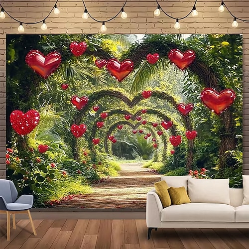 San Valentino arazzo Striscioni Coperta Rose Amore Cuori Carino Romantico 3D Da serata Soggiorno Sfondi di ripresa Decorazione per proposta di matrimonio Arredamento per la casa