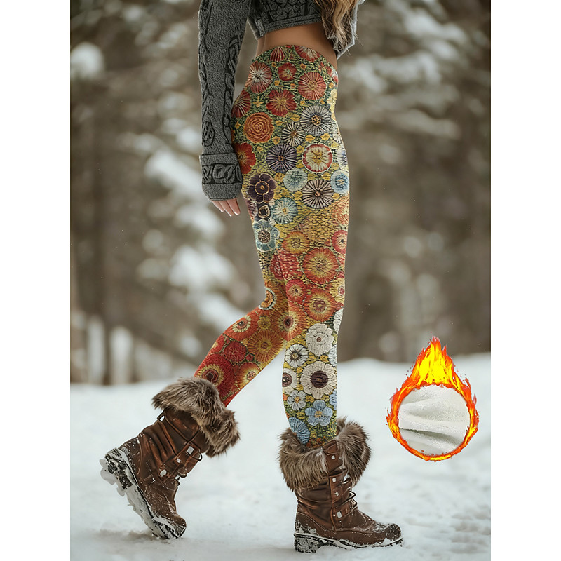 Women's Fleece Lined Leggings Leggings Vintage Ethnic Casual Full Length High Waist Graphic Geometric Pattern Abstract 3D Print Thermal Warm Windproof Comfy Stretchy Outdoor Home Street White Yellow