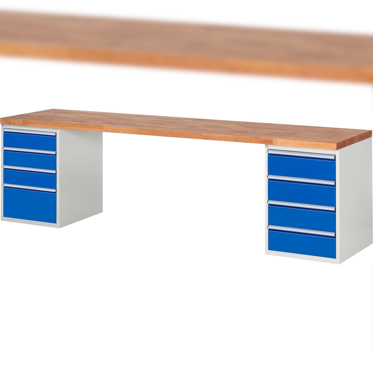 eurokraft pro Werkbank, Baukastensystem Serie 7000, 8 Schubladen, BxT 3000 x 700 mm