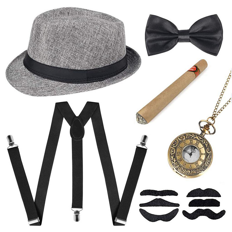 Retro Vintage Roaring 20s 1920s Panama Hat Accesories Set Accessories Set The Great Gatsby Fancy Dress Men's Masquerade Bachelorette Party Adults' Bow Hat Suspenders