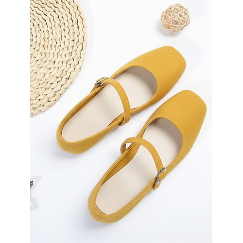 Ballerine giallo senape Mary Jane con punta quadrata per donne di Carnevale - Stile retro vestibilità comoda perfette per Carnevale festival e uso quotidiano