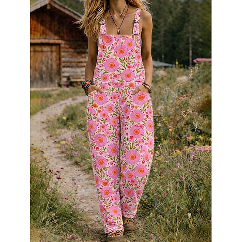 Per donna Salopette Attivo Floreale Senza Maniche Senza maniche Gamba larga Collo quadrato Tasca con tasca Quotidiano Spiaggia Vestibilità comoda Giallo Rosa Viola Estate