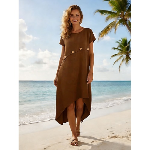 Per donna Abito Midi Abito a trapezio Abito Estivo Casual Vestibilità comoda Semplice Manica Corta Scollo a V Blu Bianco Rosso Marrone Estate Primavera