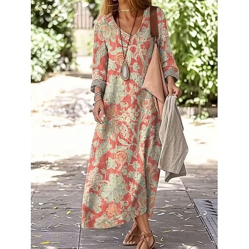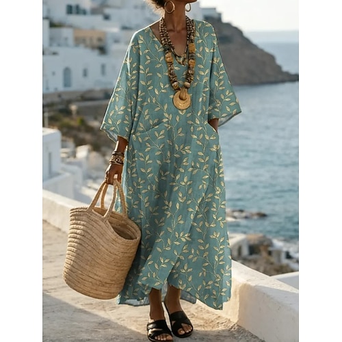 Per donna Abito maxi Abito a Tubino Casual Spiaggia Uscire Vestibilità comoda Floreale Grafico Manica Lunga Scollo a V Giallo Verde Cachi Estate Primavera